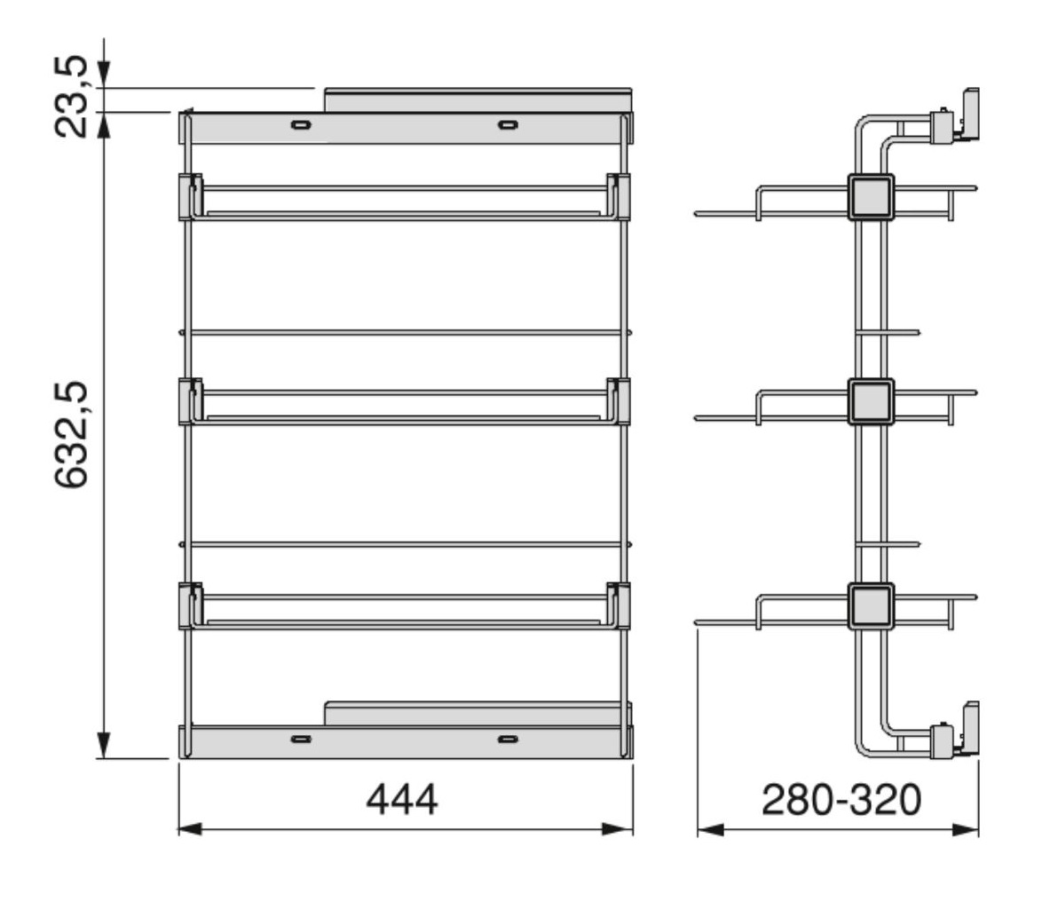 Side shoe rack for wardrobes and closets Hack. Made of steel, with retractable drawers.