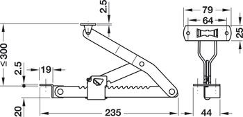 Sistema de elevação de marquesa com 18 níveis. Altura de elevação até 300mm.