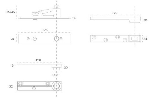 Pivot para portas de dupla acção - para aplicar com quadra 21001R.