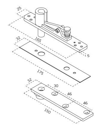 Pivot para portas de dupla acção - para aplicar com quadra 21001Q.