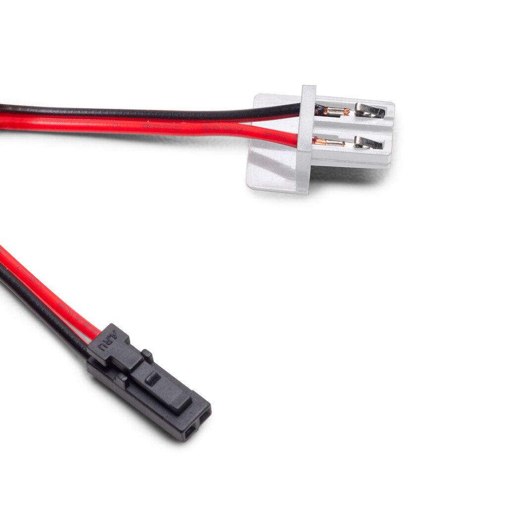 Acessórios para LED Pyxis com montagem embutida, desenvolvidos para criar várias luminárias de comprimento reduzido. O cabo de alimentação tem 1,5 m de comprimento e conexão Miniled, compatível com conversor de 24V DC (não incluído).
