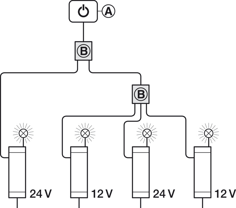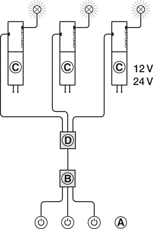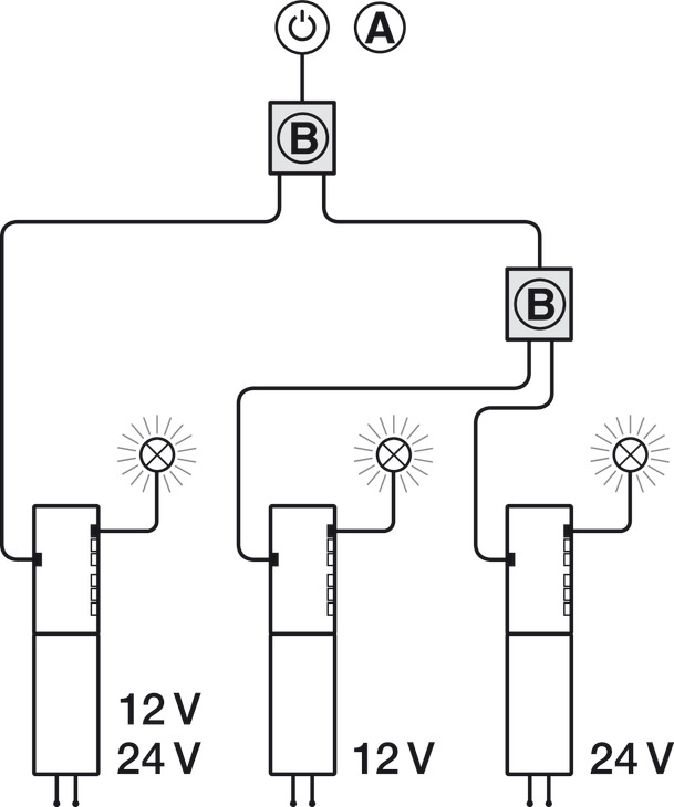 Caixa de ligação multi transformador: permite ligar até 3 transformadores/distribuidores com 1 interruptor através da função de comutação.