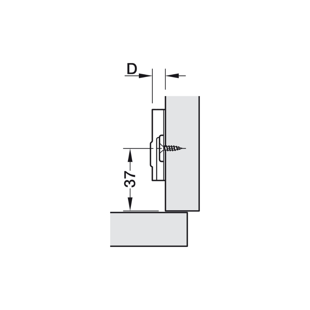 Placa de montagem em forma de cruz, Häfele Metalla 110 SM, com sistema de fixação rápida, para aparafusar com parafusos de aglomerado.