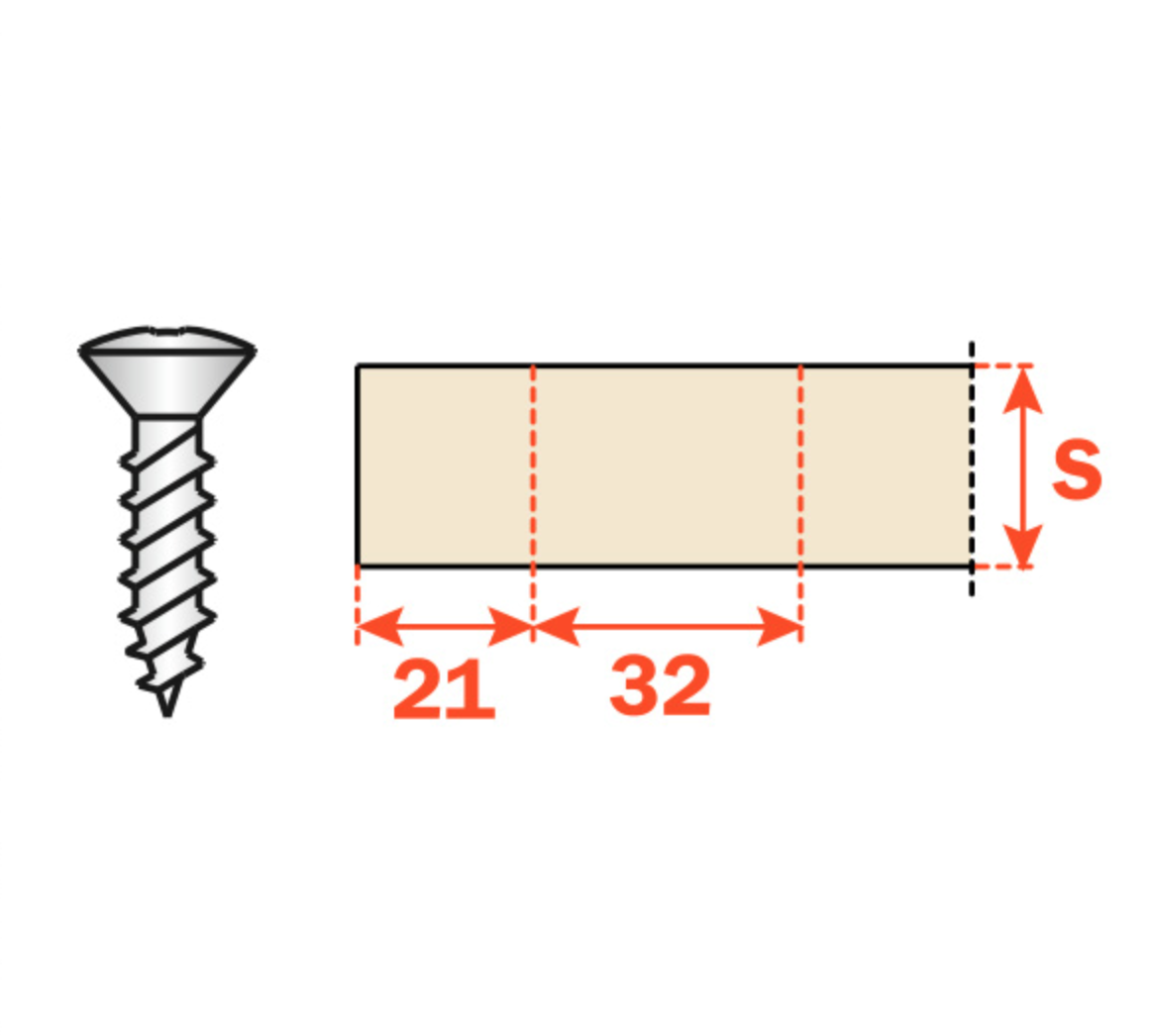Fixação com parafuso para madeira. Compatível: SERIE 100,200,400, F, B, M e Silentia+