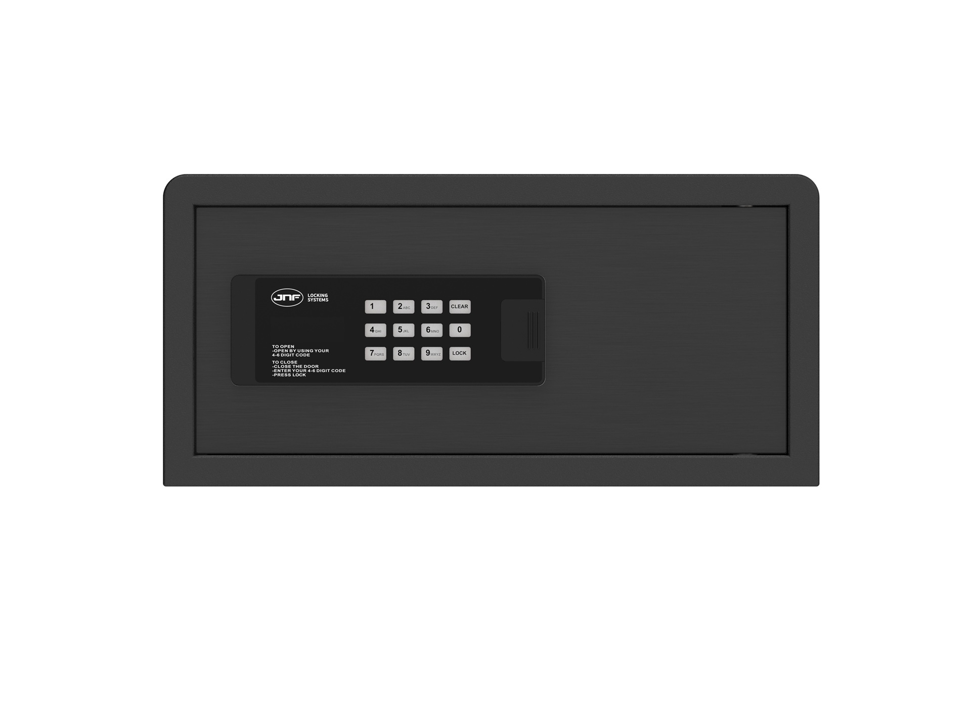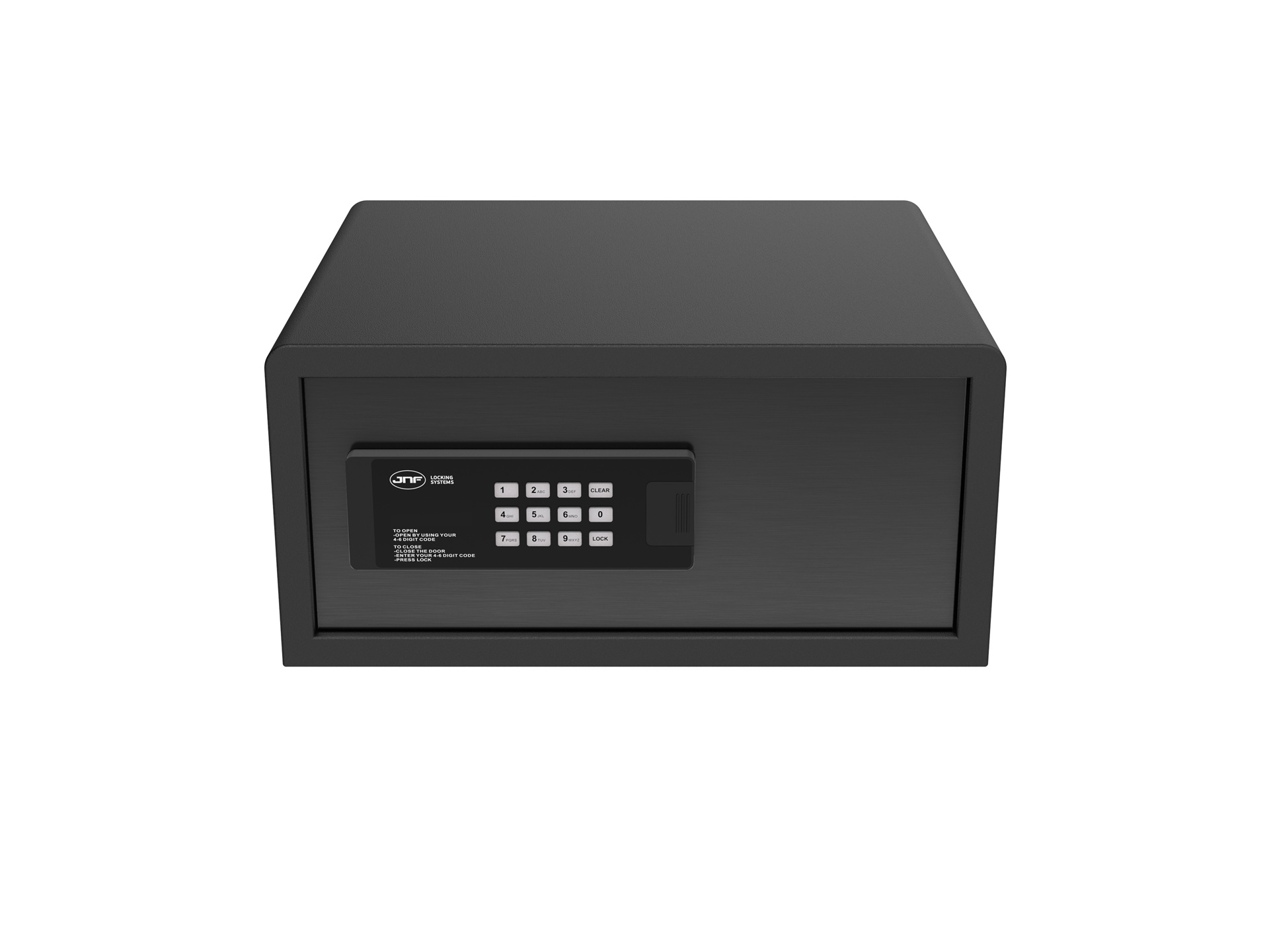 Cofre eletrónico digital para hotel, com teclado numérico analógico iluminado. Equipado com visor LED e código digital de 4 a 6 dígitos, oferece uma utilização simples e intuitiva, combinando um design sofisticado com elevada segurança.