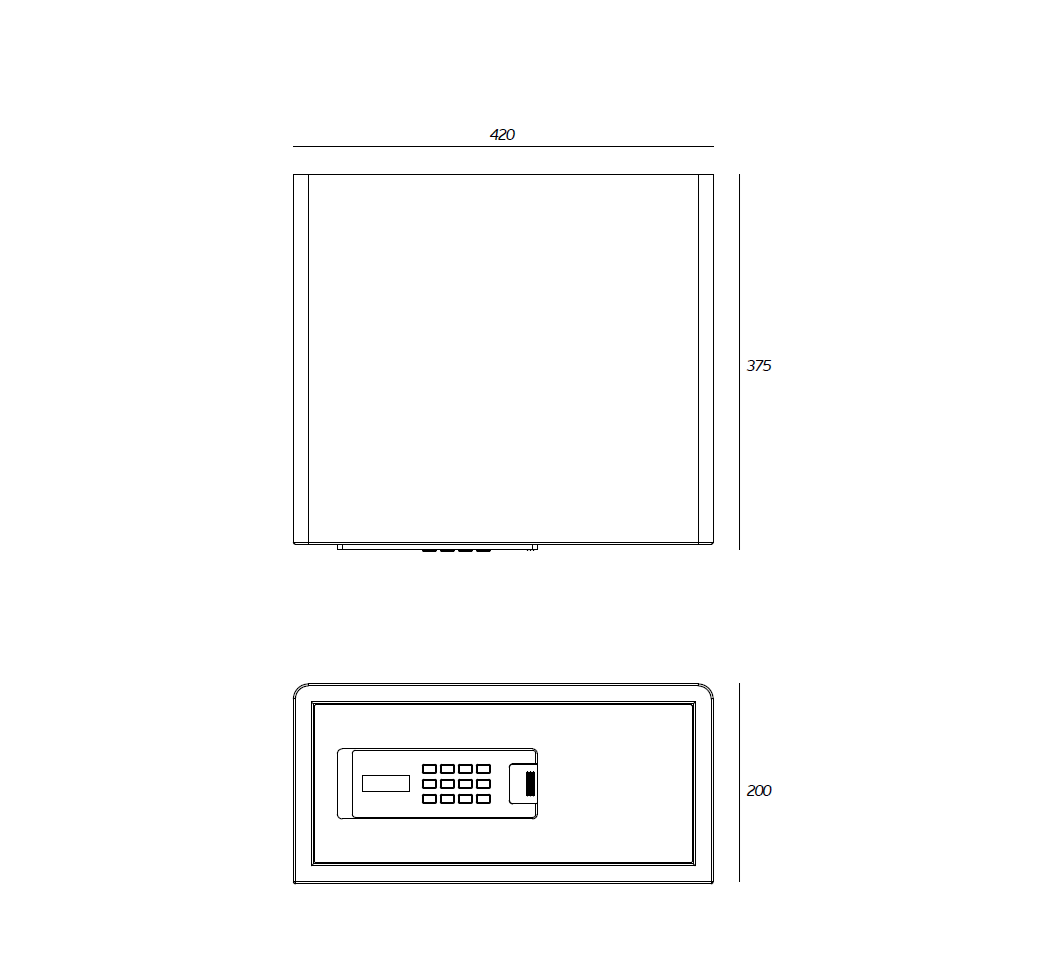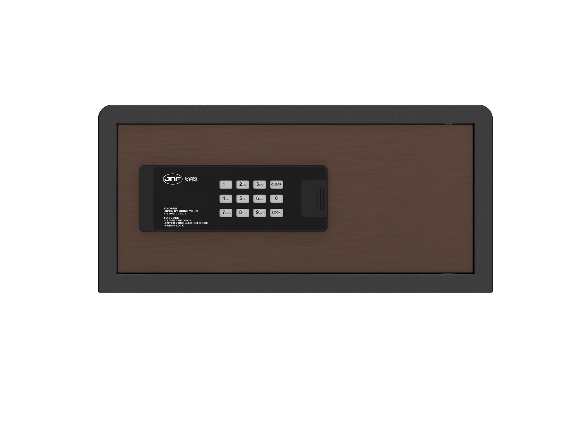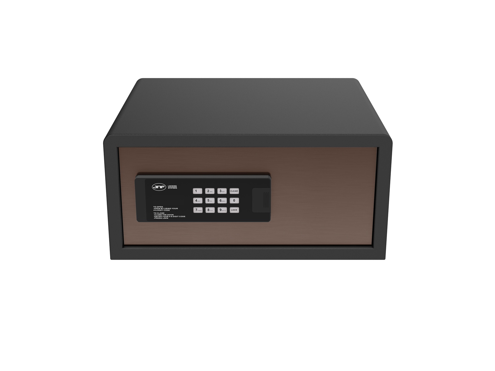 Cofre eletrónico digital para hotel, com teclado numérico analógico iluminado. Equipado com visor LED e código digital de 4 a 6 dígitos, oferece uma utilização simples e intuitiva, combinando um design sofisticado com elevada segurança.