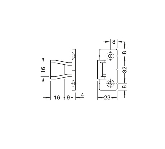 Componente Häfele Pacofix PF para aparafusar a painéis, Policarbonato, preto, montagem com parafusos Euro com cabeça chata.