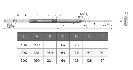 Conjunto de corrediças para gavetas.Altura 37mm.Aço, zincado.