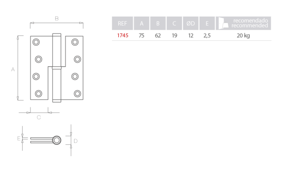 DOBRADIÇA 1/2 BALANÇO NIQ. PÉROLA S-1745-142 DIR.