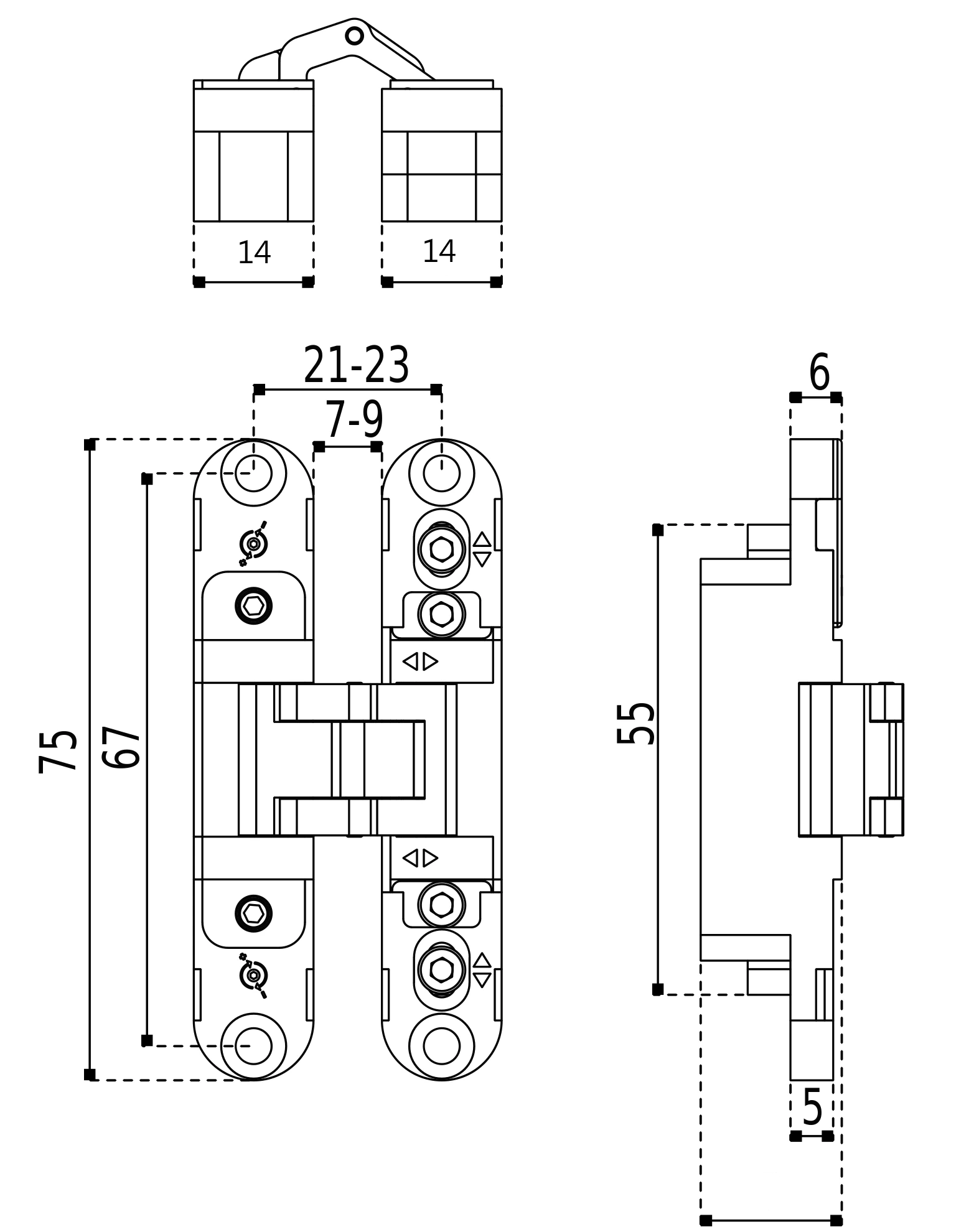 Dobradiça invisível para mobiliário com ajuste 3D. 10kg (2x), 14kg (3x), 18kg (4x).