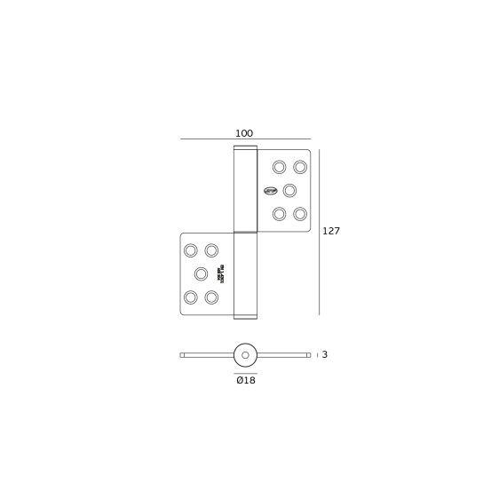 Dobradiça de bandeira, reversível de sobrepor.