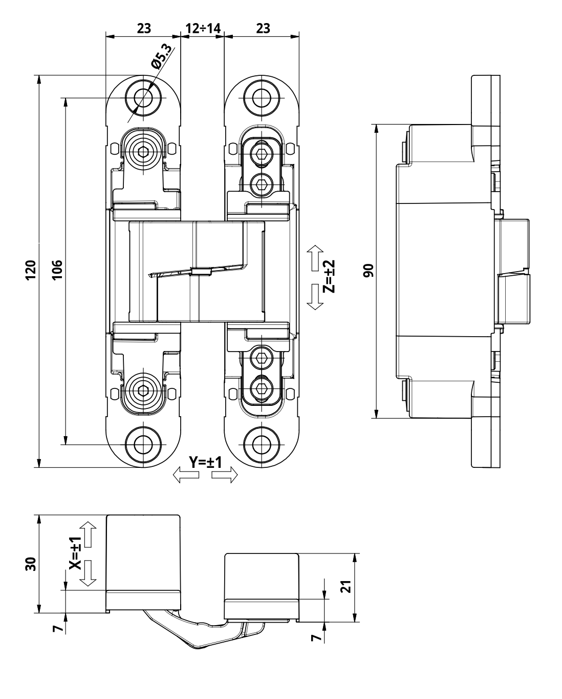 DOBRADIÇA INV. IE236120VN 3D 40KG 180º NIQ. SAT.