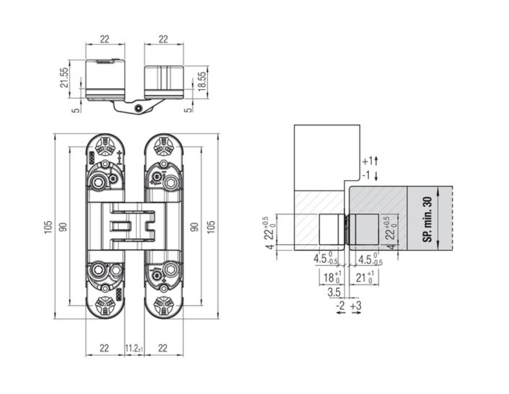 Dobradiça invisível, 3d, 45kg