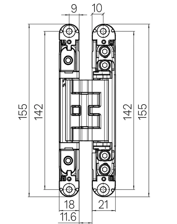 Dobradiça invisível regulável KUBICA K2460 HYBRID. Fabricada em zamak, tem capacidade para 60Kg com 2 dobradiças.