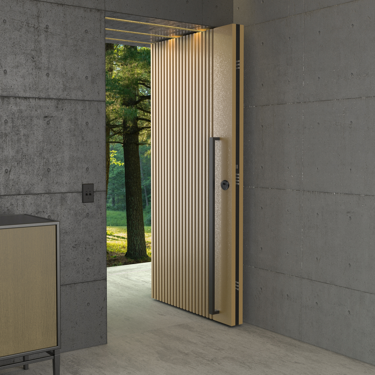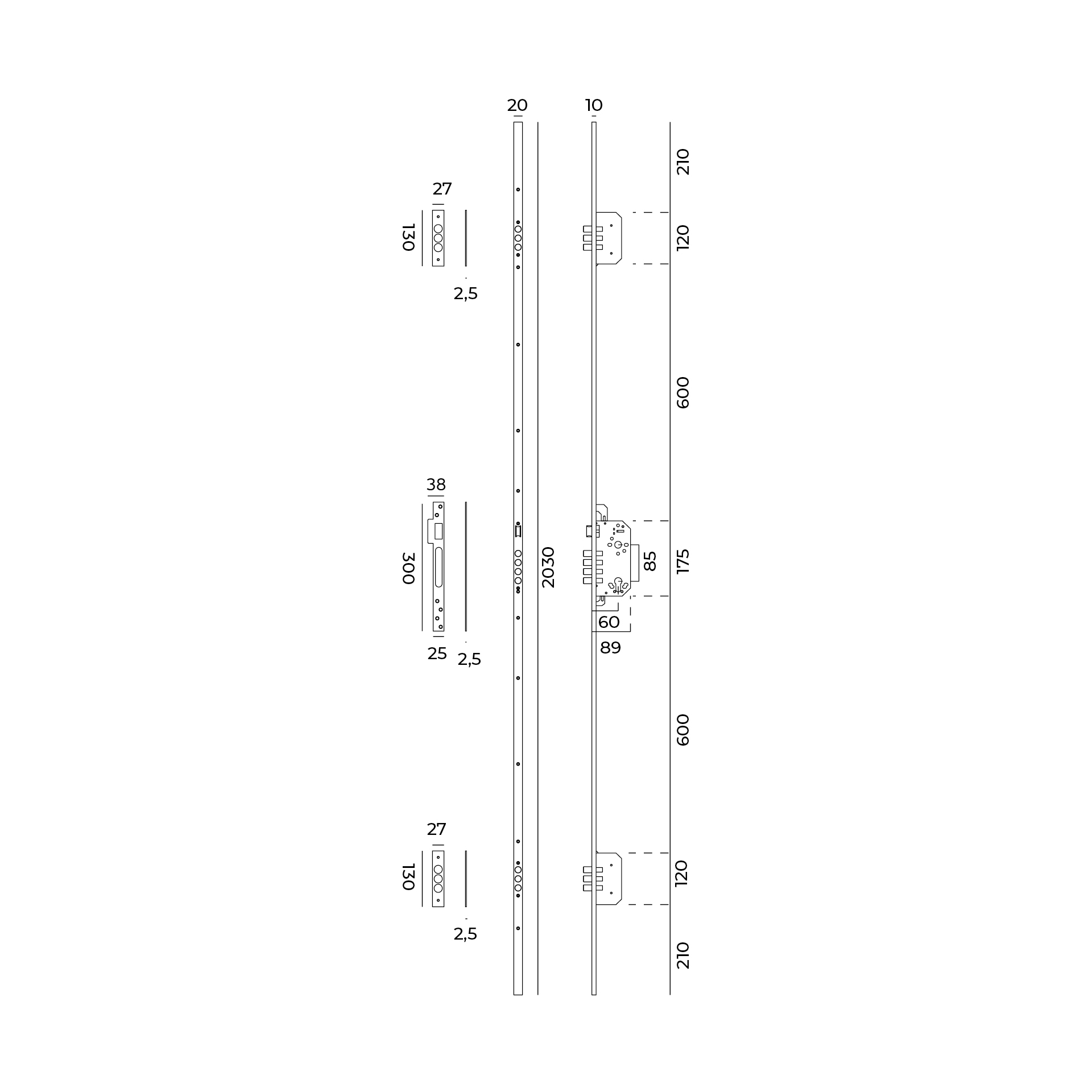 Fechadura de três pontos com escudete de segurança. Para ser utilizada em portas que estão sujeitas a uma utilização elevada.