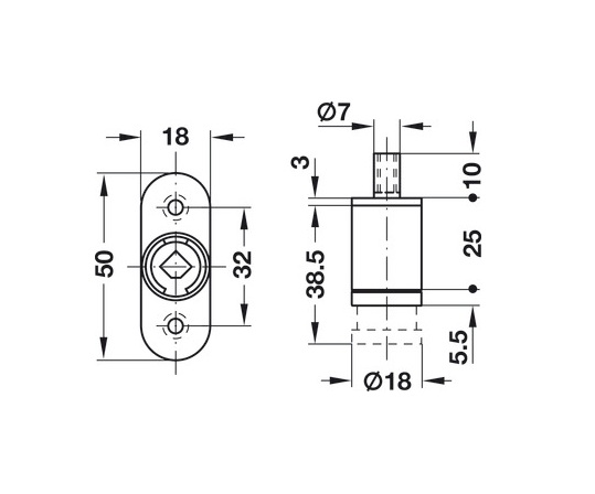 Fechadura de pressionar para abertura, para fixação por parafuso. Para combinação com núcleo removível do cilindro Symo.