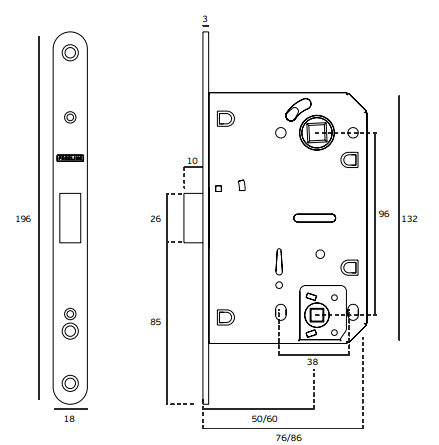 Fechadura de embutir magnética para casa de banho.