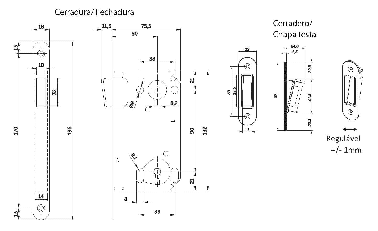 Fechadura magnética 50/90 com trinco de aço revestido a plástico, operado por chave de embutir. A fechadura não possui saliências na parte frontal graças ao trinco totalmente fechado.