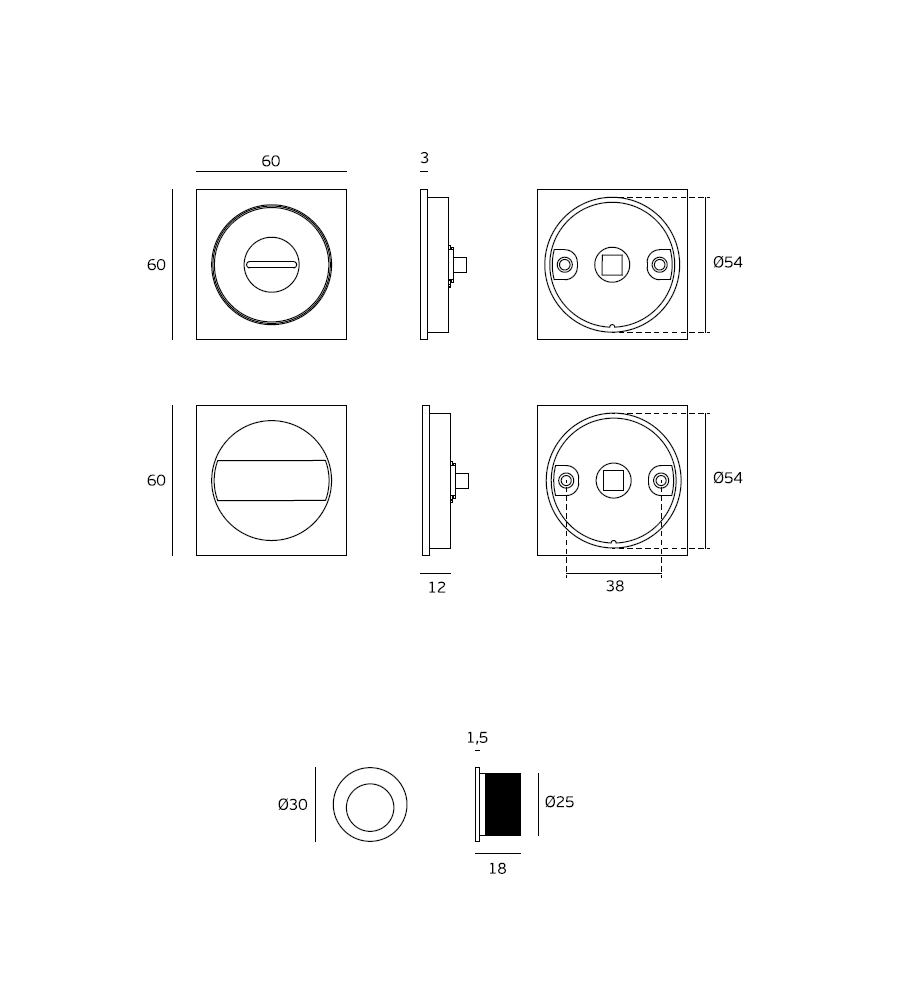 Fechadura de embutir para portas de correr. Fornecida com conjunto de puxadores de embutir.
