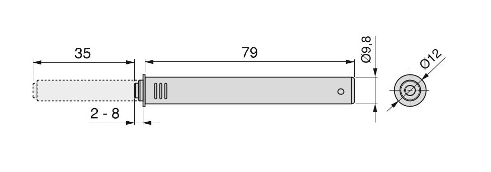 Fecho tic-tac de porta para encastrar no móvel com regulação Push Latch, comprimento 80mm, com amortecedor, em plástico.
