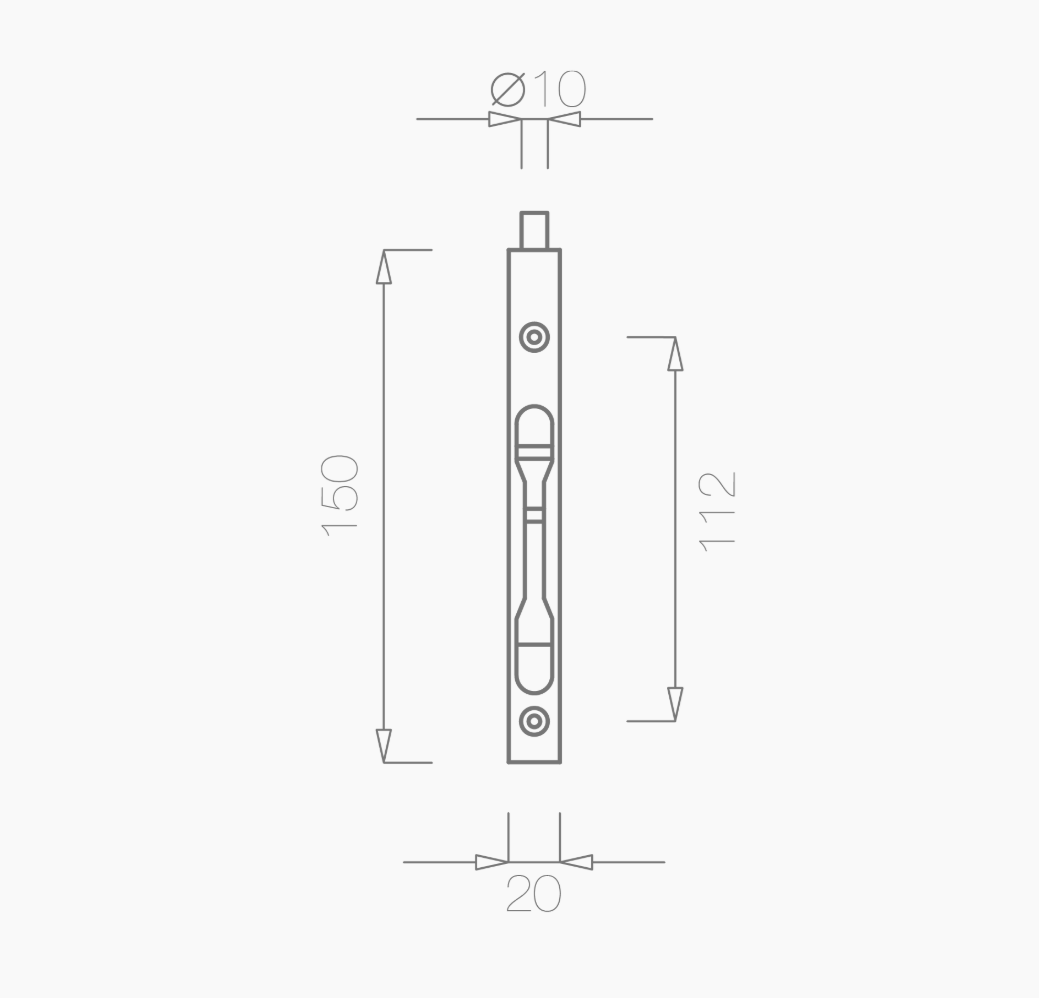 Fecho de embutir para portas e janelas. Acionamento por manípulo. Fixo com dois parafusos Ø3,7x30mm. Chapa testa a fixar com dois parafusos Ø3,8x19mm.