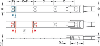 Fita LED 3071 de 8mm de largura, 2 pinos (monocromático), 120 LEDs/m, 4,8 W/m, IP20.
