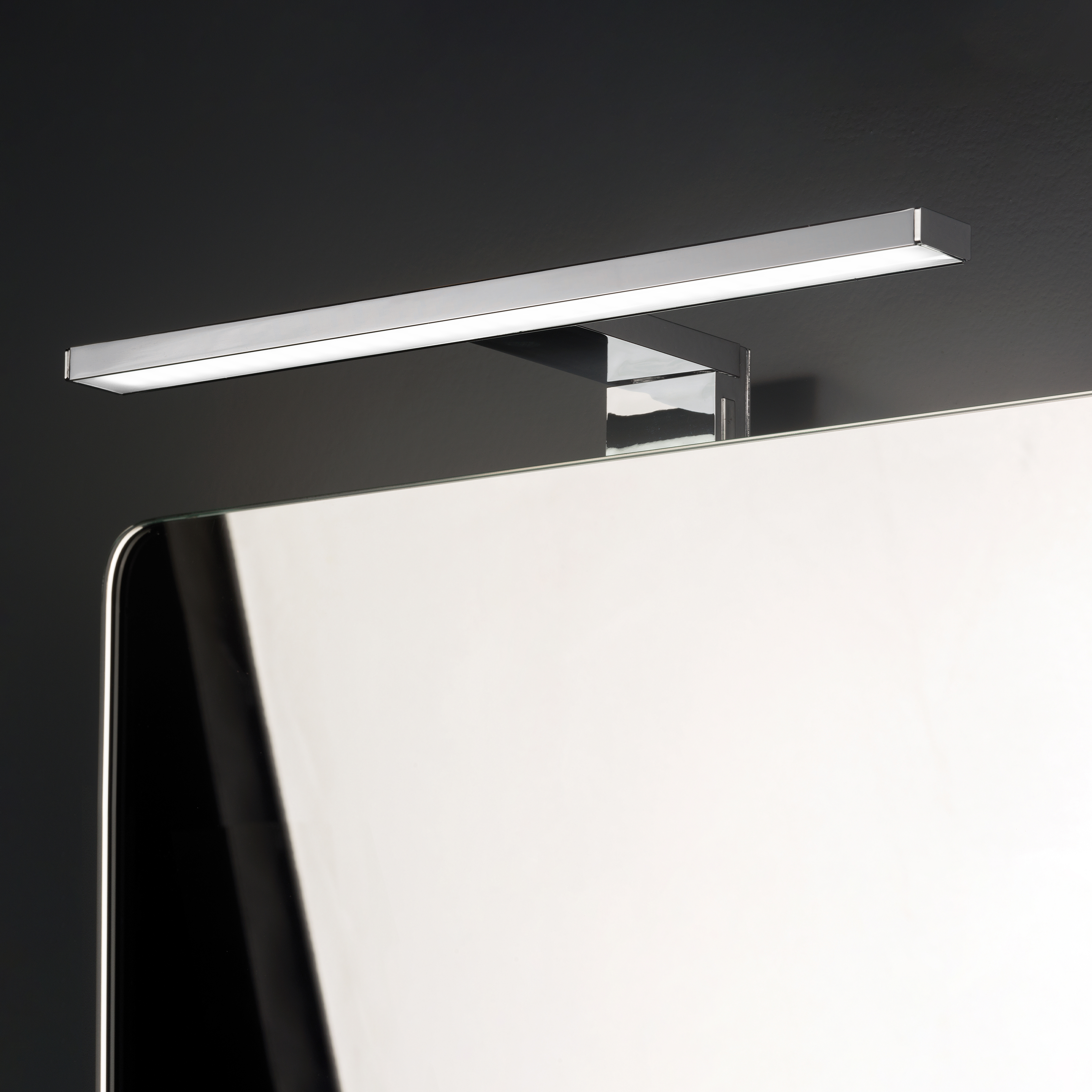 O foco de LED para espelho de WC Taurus tem um design sofisticado e extrafino com um difusor opala que homogeneiza a luz branca fria. Solução funcional e decorativa com proteção IP44 para ambientes húmidos.