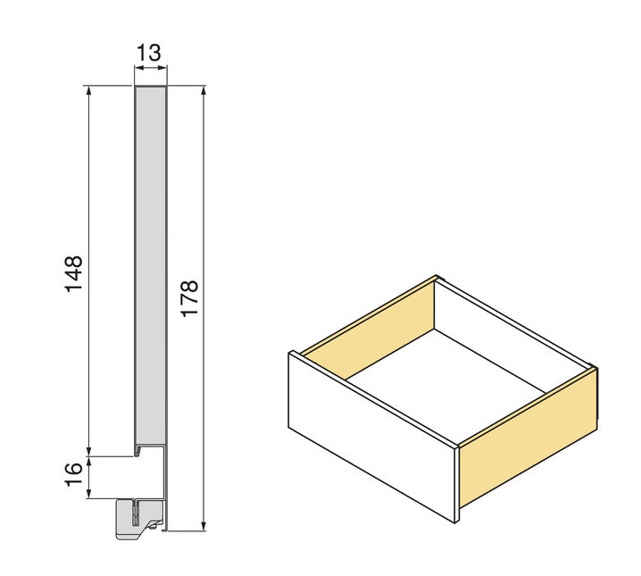 A gaveta de cozinha e banho Protone está disponível em formato kit com todas as ferragens necessárias para a sua montagem. Inclui corrediças de extracção total com fecho suave, jogo de engates e ilhargas de gaveta.