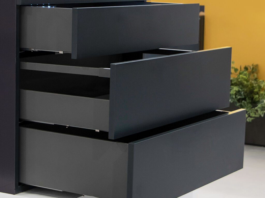 Gaveta exterior Vertex com Push Syncro e regulação 3D, altura 93mm, 40kg. Em aço antracite.