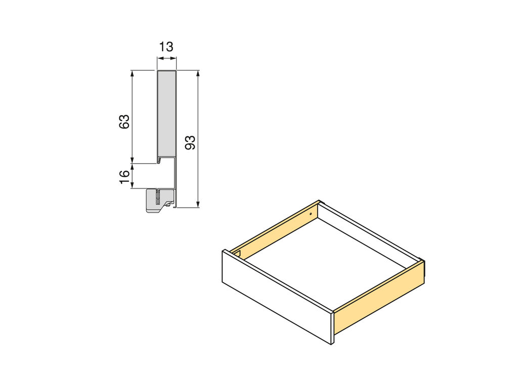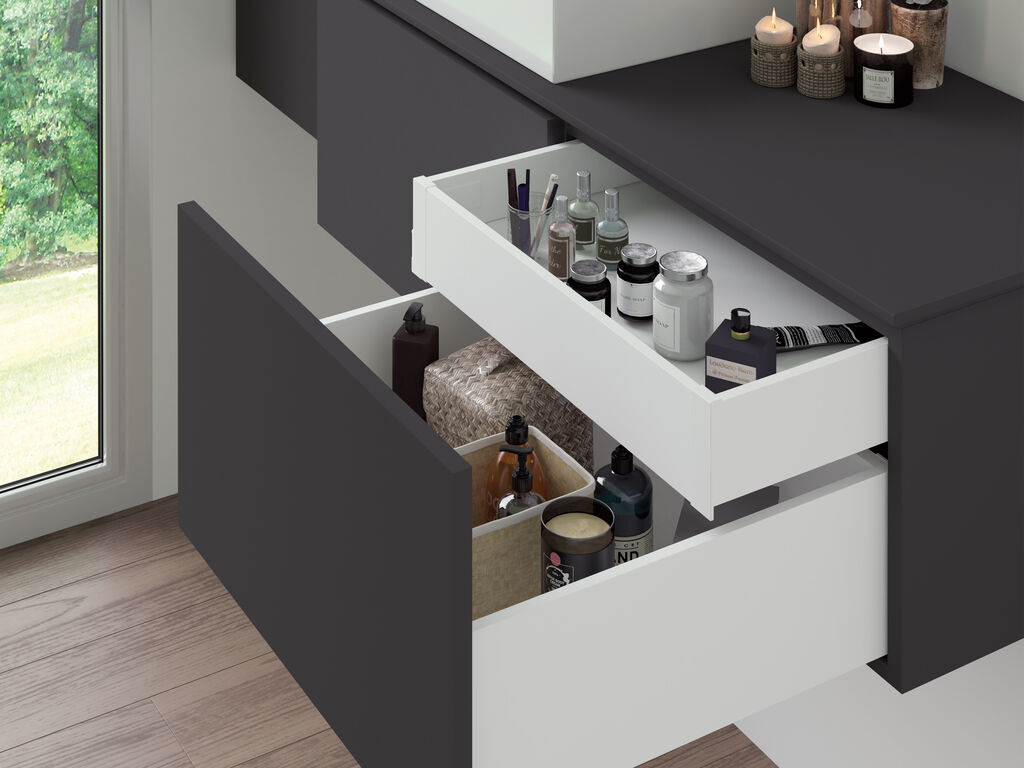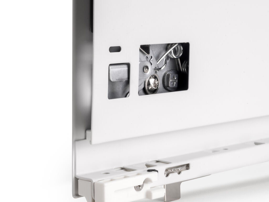 Gaveta exterior Vertex com Push Syncro e regulação 3D, altura 93mm, 40kg. Em aço branco.