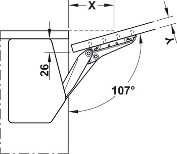 Ferragem elevatória para 1 porta- conjunto completo. Para portas grandes em madeira, vidro ou com perfil de alumínio. Possibilidades de ajuste em altura, lateral, inclinação da frente ±1.5mm.