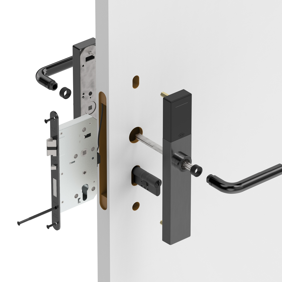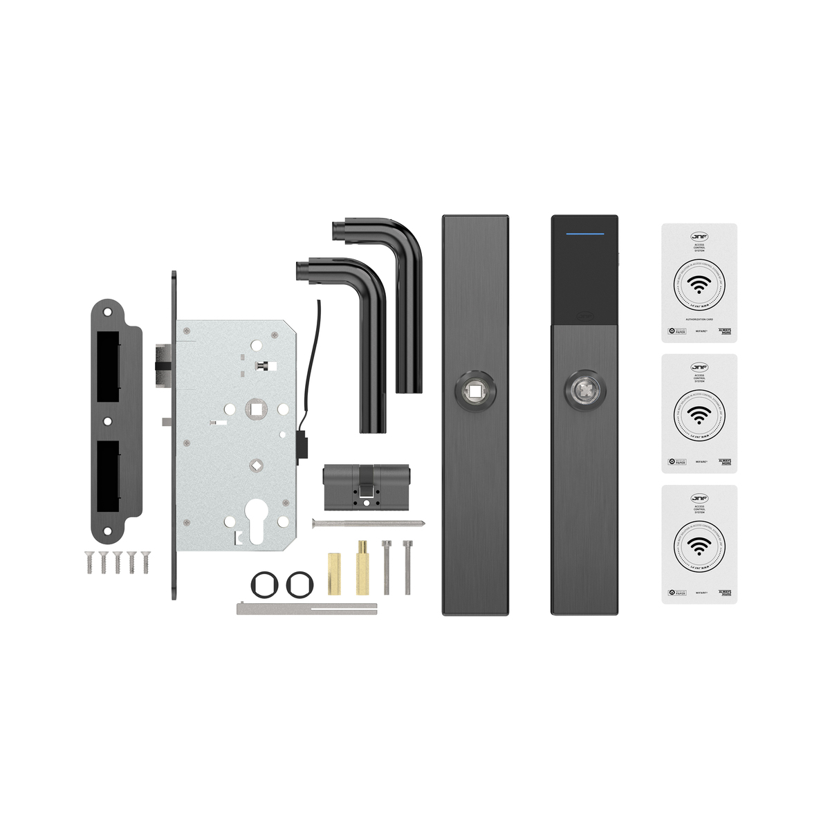 Kit completo de fechadura de controlo de acessos Voyager by JNF. Placa cega em ambos os lados. Puxador IN.00.028.SR. Fechadura de embutir IN.20.601.R, com função antipânico e anti cartão. Certificação CE, corta-fogo/fumo (EN12209/EN179). Switch de ligação ao controlo de acessos que monitoriza o fecho pelo interior. Cilindro europeu IN.19.S05.35.35 (fica oculto, podendo ser acedido em caso de emergência). Com um desenho simples, destaca-se pela grande compatibilidade com diferentes fechaduras, diversidade de acabamentos e modelos de puxadores. PREÇOS SOB CONSULTA.