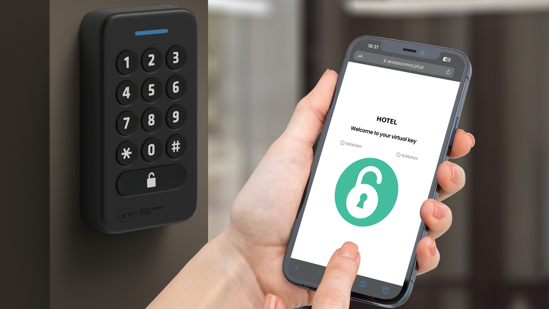 Controlo de acessos de parede que combina várias tecnologias de abertura como: App Voyager by JNF, teclado numérico, cartão MIFARE® e Bluetooth. Permite controlar diversos tipos de periféricos. PREÇOS SOB CONSULTA.