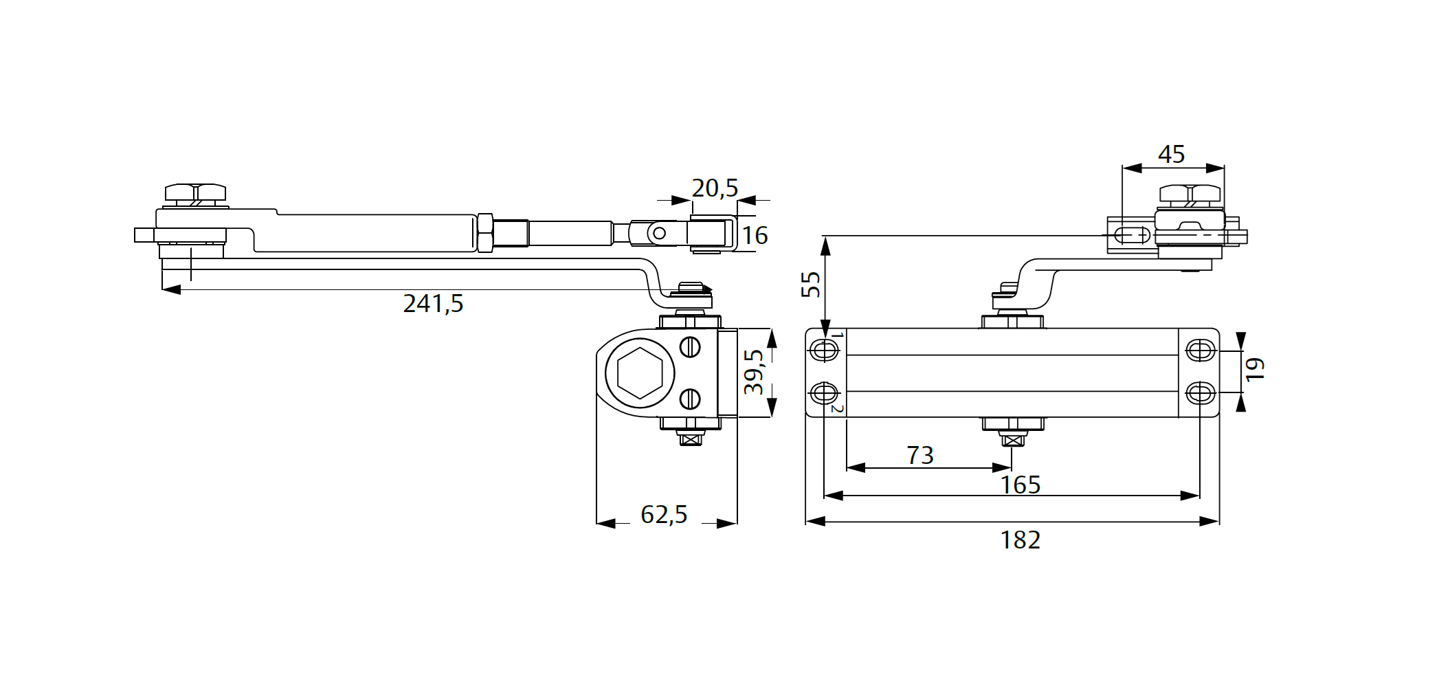 Mola ideal para as portas ligeiras de alumínio e PVC. Mecanismo que permite fechar inferior controlo portas de até 950mm de largura e um peso aproximado de 60kg. Duas válvulas de regulação para controlar a velocidade de fecho e velocidade final. Abertura até 180º. Reversível.