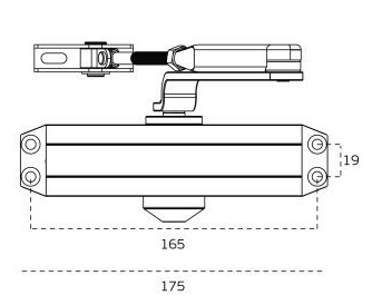 Mola de porta aérea hidráulica de sobrepor com braço standard sem paragem. Peso máximo de porta: 80kg.