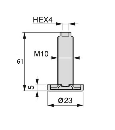 Nivelador M10 circular para móveis com tampa, diâmetro 23mm.