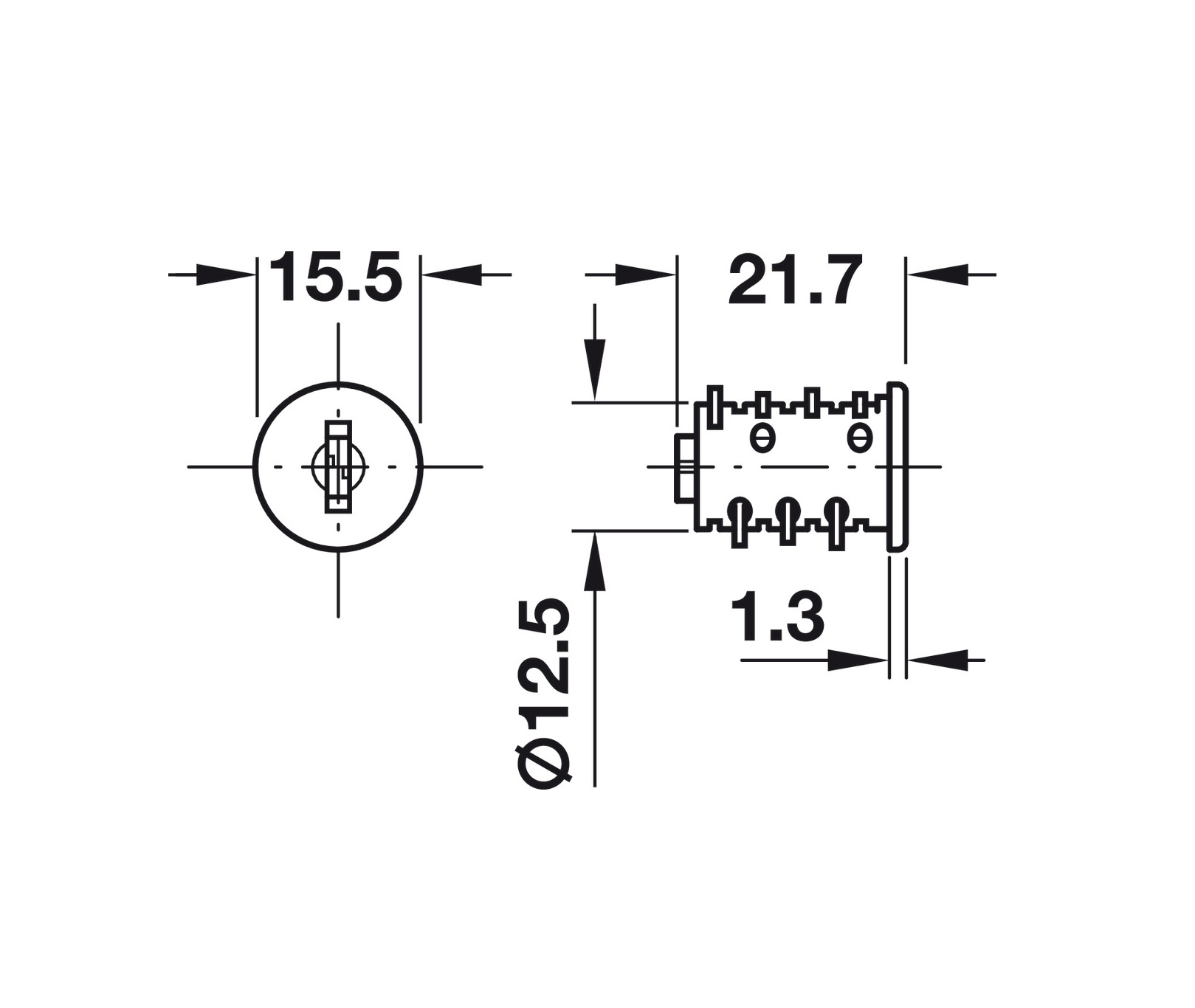 Núcleo de cilindro universal Symo com chaves diferentes. Mais combinações sob consulta. Compatíveis com a chave-mestra 210.11.003.