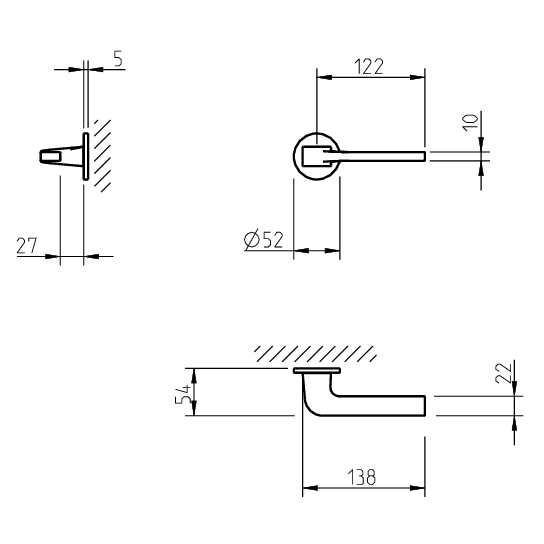 Par de puxador com mola recuperadora e adaptador com sistema “click”. Ferro quadrado de 8x90mm. Fixação da muleta com perno M6 oculto.