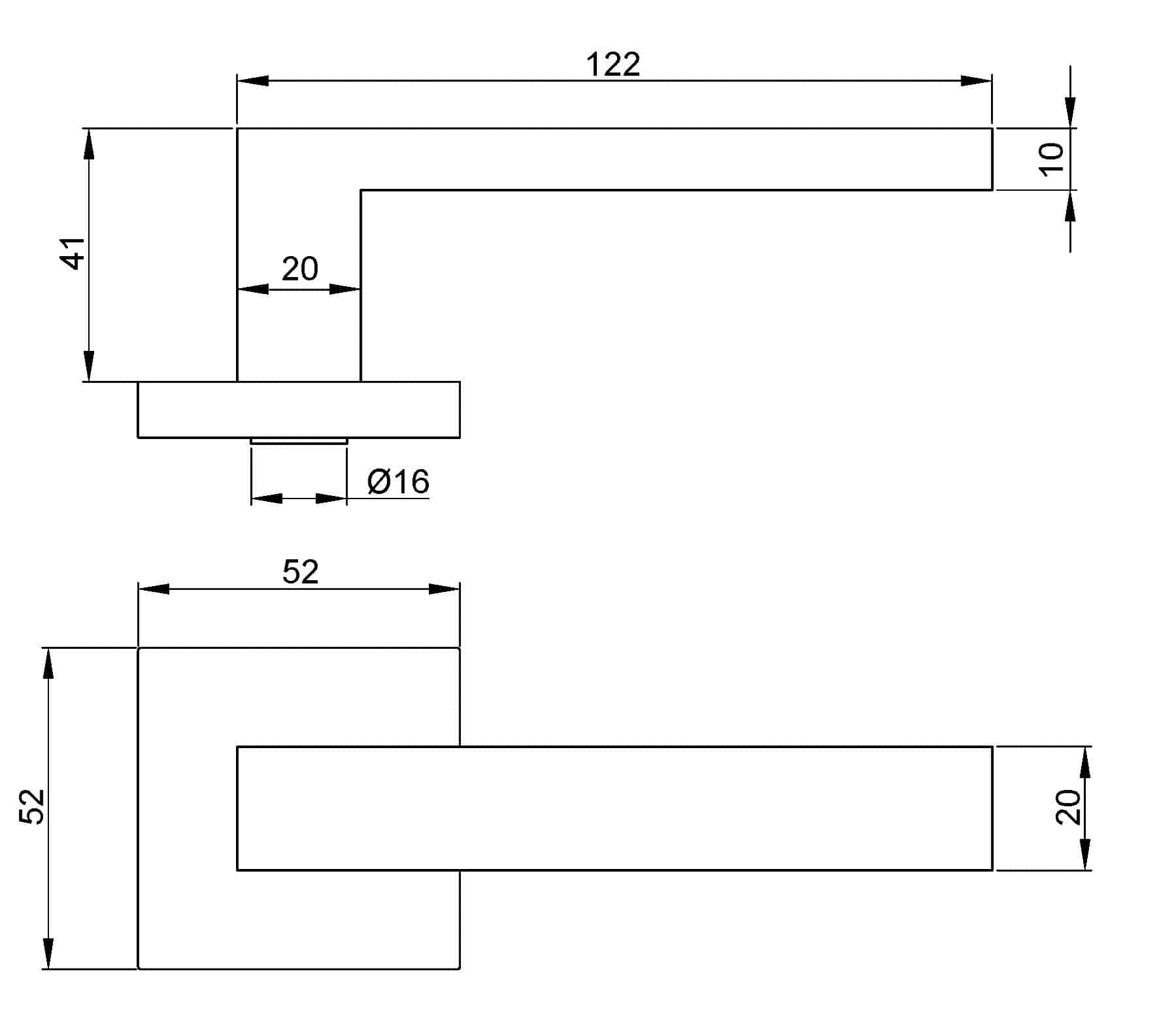 Conjunto de puxadores para portas interiores com espessura entre 35mm e 45mm. Roseta quadrada de 52x52mm.