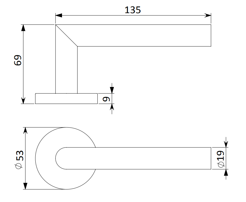 Par de puxador de muleta reta de 19mm. Com entrada de chave normal incluída.