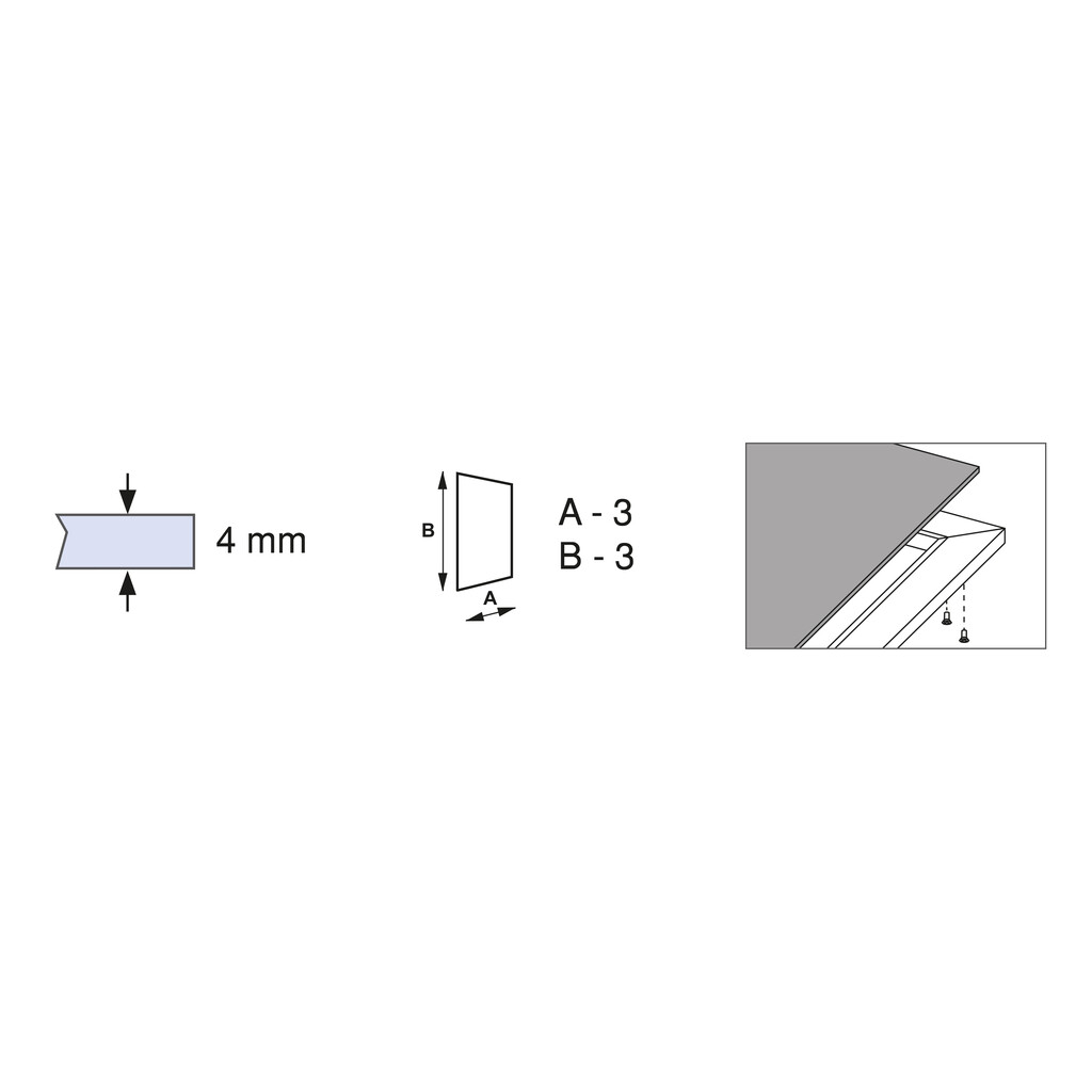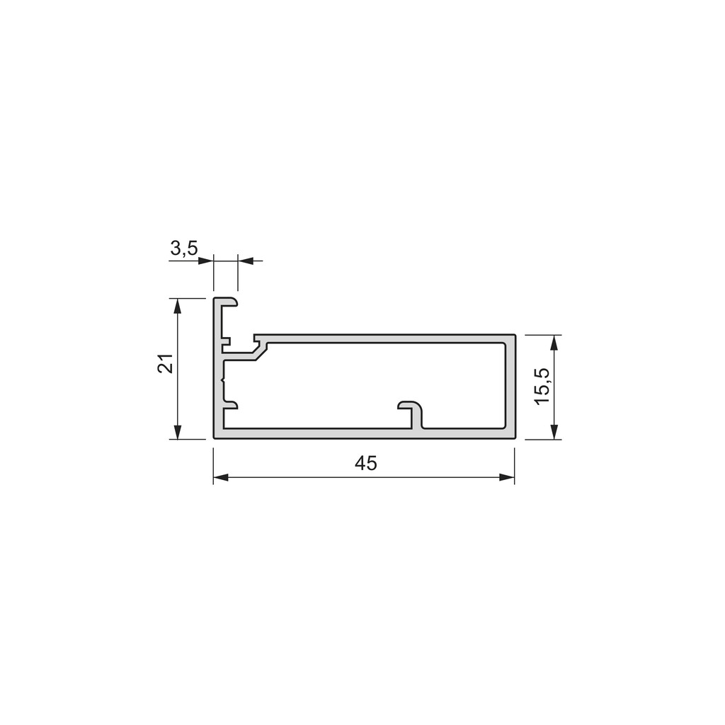 Perfil de alumínio para fazer armários de exposição ou portas para roupeiros. Concebido para vidro de 4 mm de espessura, com borda polida.