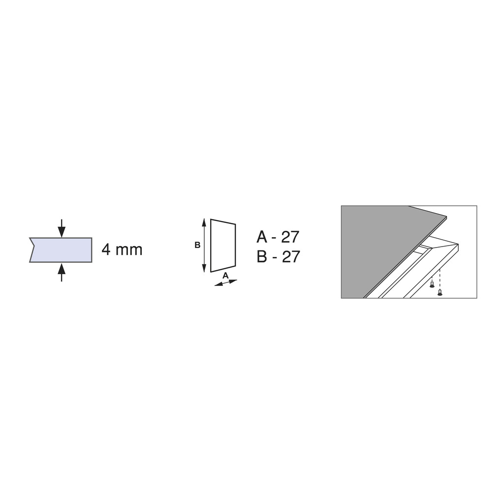Perfil de alumínio para fazer armários de exposição ou portas para roupeiros. Para vidro de 4 mm de espessura.