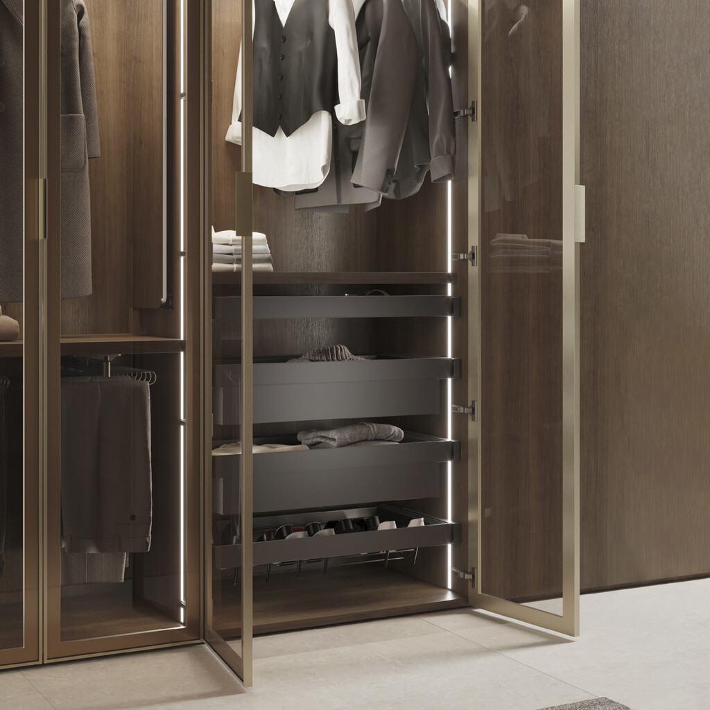 Perfil de alumínio para fazer armários de exposição ou portas para roupeiros. Para vidro de 4 mm de espessura.