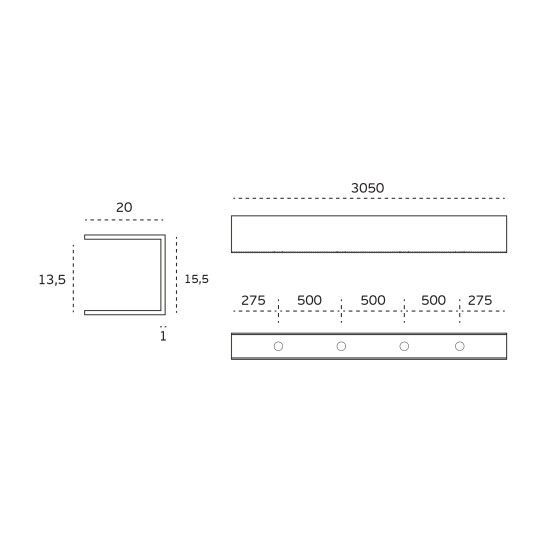 Perfil em “U” com 3050mm para painel de Ø13mm, SM.101.