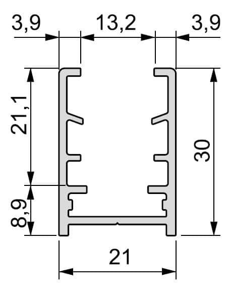 Perfil de suporte de painel, para fixação de painéis de 12-13mm a parede ou chão.