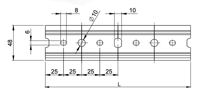 Calha de suspensão de módulos superiores em aço.
