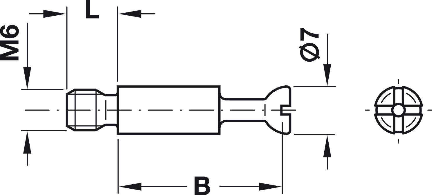 Perno, Häfele Minifix® S100, com rosca M6.