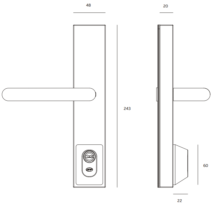 Caixa interior fechada e reforçada. Sistema reversível para puxador e cilindro. Proteção de cilindro sólida.