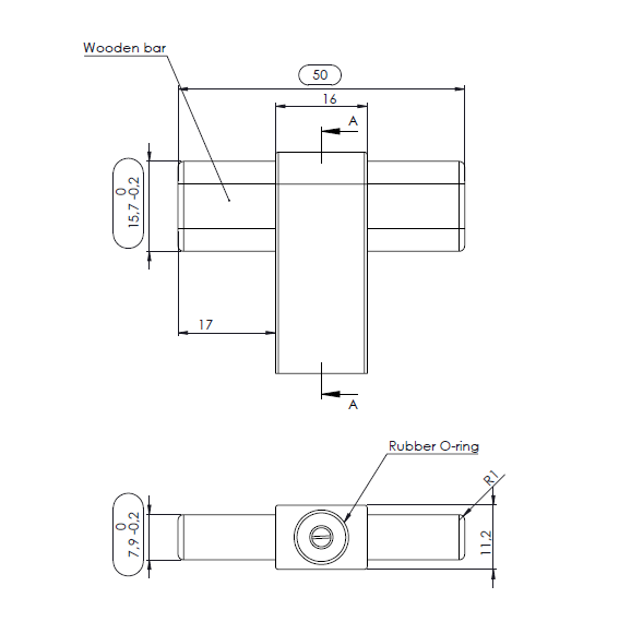 Este puxador surge da ideia de combinar dois materiais – madeira e metal. A parte de contacto é de madeira, que traz um calor e toque agradáveis.