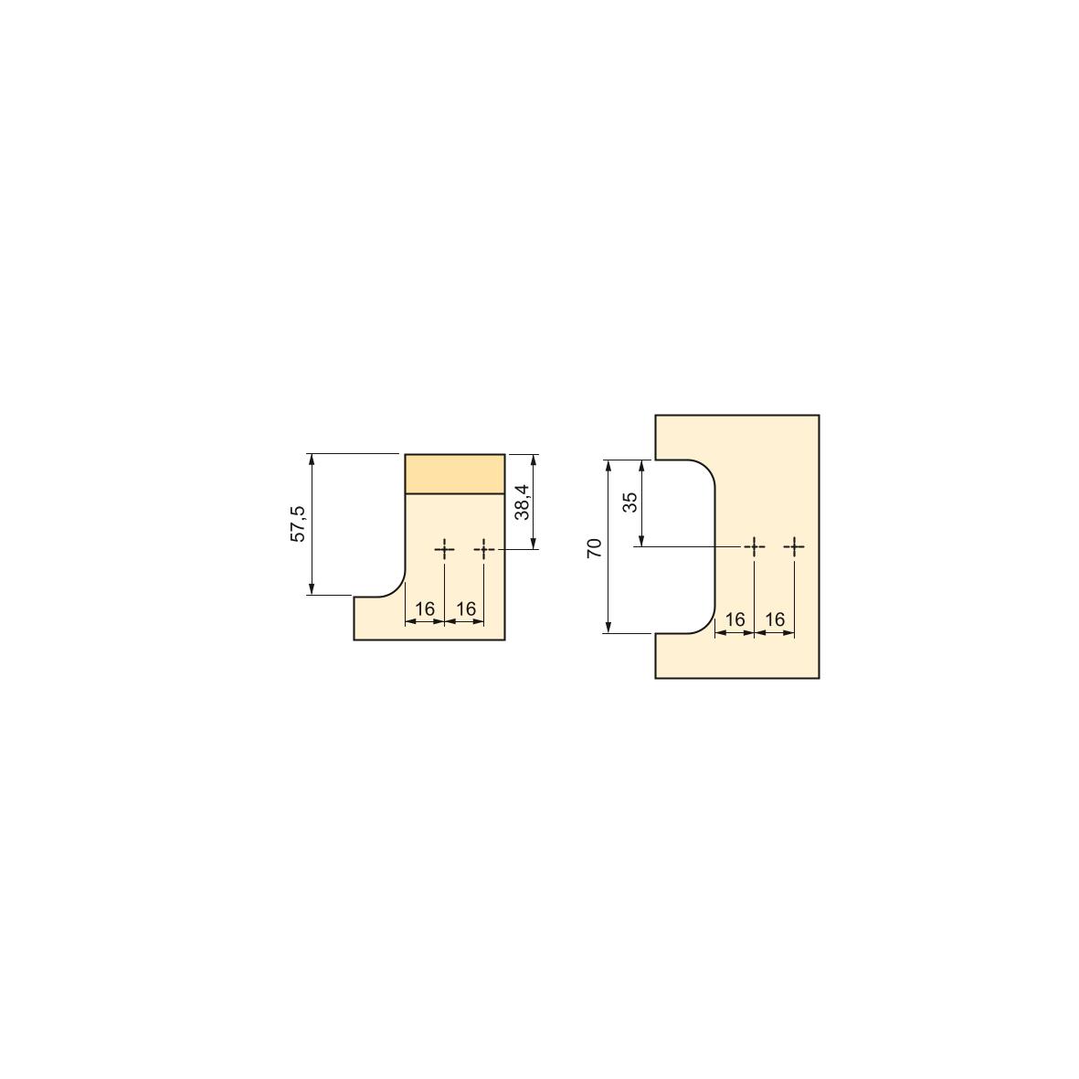 Esquadro para montagem do perfil Gola no módulo, em aço zincado.